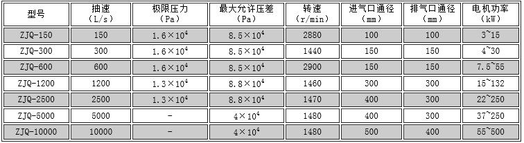 ZJQ系列氣冷(leng)式羅茨真(zhen)空泵主要(yao)技術性能(néng)規格